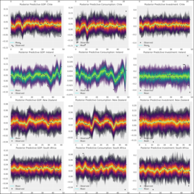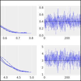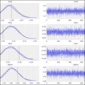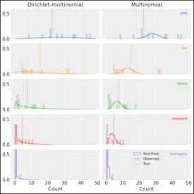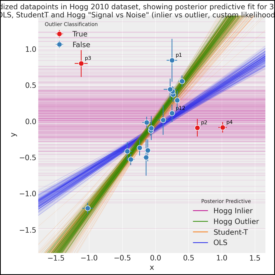 PyMC Example Gallery# Introductory# General Overview Introductory Overview of PyMC Simple Linear Regression GLM: Linear regression General API quickstart General API quickstart Library Fundamentals# Distribution Dimensionality Distribution Dimensionality PyMC and PyTensor PyMC and PyTensor Using Data Containers Using Data Containers How to# Prior and Posterior Predictive Checks Prior and Posterior Predictive Checks Model Comparison Model comparison Updating Priors Updating Priors Automatic marginalization of discrete variables Automatic marginalization of discrete variables How to debug a model How to debug a model How to wrap a JAX function for use in PyMC How to wrap a JAX function for use in PyMC Splines Splines Bayesian copula estimation: Describing correlated joint distributions Bayesian copula estimation: Describing correlated joint distributions Using ModelBuilder class for deploying PyMC models Using ModelBuilder class for deploying PyMC models Using a “black box” likelihood function Using a “black box” likelihood function LKJ Cholesky Covariance Priors for Multivariate Normal Models LKJ Cholesky Covariance Priors for Multivariate Normal Models Bayesian Missing Data Imputation Bayesian Missing Data Imputation Profiling Profiling Generalized Linear Models# GLM: Robust Linear Regression GLM: Robust Linear Regression GLM-ordinal-features GLM-ordinal-features Out-Of-Sample Predictions Out-Of-Sample Predictions Bayesian regression with truncated or censored data Bayesian regression with truncated or censored data Binomial regression Binomial regression GLM: Negative Binomial Regression GLM: Negative Binomial Regression Hierarchical Binomial Model: Rat Tumor Example Hierarchical Binomial Model: Rat Tumor Example A Primer on Bayesian Methods for Multilevel Modeling A Primer on Bayesian Methods for Multilevel Modeling GLM-missing-values-in-covariates GLM-missing-values-in-covariates Regression Models with Ordered Categorical Outcomes Regression Models with Ordered Categorical Outcomes GLM: Poisson Regression GLM: Poisson Regression Discrete Choice and Random Utility Models Discrete Choice and Random Utility Models GLM: Model Selection GLM: Model Selection GLM: Robust Regression using Custom Likelihood for Outlier Classification GLM: Robust Regression using Custom Likelihood for Outlier Classification Rolling Regression Rolling Regression Case Studies# Confirmatory Factor Analysis and Structural Equation Models in Psychometrics Confirmatory Factor Analysis and Structural Equation Models in Psychometrics Hierarchical Partial Pooling Hierarchical Partial Pooling NBA Foul Analysis with Item Response Theory NBA Foul Analysis with Item Response Theory Bayesian Estimation Supersedes the T-Test Bayesian Estimation Supersedes the T-Test A Hierarchical model for Rugby prediction A Hierarchical model for Rugby prediction Estimating parameters of a distribution from awkwardly binned data Estimating parameters of a distribution from awkwardly binned data Factor analysis Factor analysis Probabilistic Matrix Factorization for Making Personalized Recommendations Probabilistic Matrix Factorization for Making Personalized Recommendations Reliability Statistics and Predictive Calibration Reliability Statistics and Predictive Calibration Generalized Extreme Value Distribution Generalized Extreme Value Distribution Model building and expansion for golf putting Model building and expansion for golf putting Fitting a Reinforcement Learning Model to Behavioral Data with PyMC Fitting a Reinforcement Learning Model to Behavioral Data with PyMC Causal Inference# Simpson’s paradox Simpson’s paradox Interrupted time series analysis Interrupted time series analysis Regression discontinuity design analysis Regression discontinuity design analysis Interventional distributions and graph mutation with the do-operator Interventional distributions and graph mutation with the do-operator Bayesian Non-parametric Causal Inference Bayesian Non-parametric Causal Inference Bayesian mediation analysis Bayesian mediation analysis Counterfactual inference: calculating excess deaths due to COVID-19 Counterfactual inference: calculating excess deaths due to COVID-19 Introduction to Bayesian A/B Testing Introduction to Bayesian A/B Testing Difference in differences Difference in differences Bayesian moderation analysis Bayesian moderation analysis Gaussian Processes# Mean and Covariance Functions Mean and Covariance Functions Student-t Process Student-t Process Heteroskedastic Gaussian Processes Heteroskedastic Gaussian Processes Gaussian Processes: Latent Variable Implementation Gaussian Processes: Latent Variable Implementation Sparse Approximations Sparse Approximations Gaussian Processes using numpy kernel Gaussian Processes using numpy kernel Kronecker Structured Covariances Kronecker Structured Covariances Example: Mauna Loa CO_2 continued Example: Mauna Loa CO_2 continued Gaussian Process for CO2 at Mauna Loa Gaussian Process for CO2 at Mauna Loa Gaussian Processes: HSGP Reference & First Steps Gaussian Processes: HSGP Reference & First Steps Baby Births Modelling with HSGPs Baby Births Modelling with HSGPs Marginal Likelihood Implementation Marginal Likelihood Implementation Multi-output Gaussian Processes: Coregionalization models using Hamadard product Multi-output Gaussian Processes: Coregionalization models using Hamadard product GP-Circular GP-Circular Modeling spatial point patterns with a marked log-Gaussian Cox process Modeling spatial point patterns with a marked log-Gaussian Cox process Gaussian Processes: HSGP Advanced Usage Gaussian Processes: HSGP Advanced Usage Gaussian Process (GP) smoothing Gaussian Process (GP) smoothing Time Series# Longitudinal Models of Change Longitudinal Models of Change Forecasting with Structural AR Timeseries Forecasting with Structural AR Timeseries Analysis of An AR(1) Model in PyMC Analysis of An AR(1) Model in PyMC Stochastic Volatility model Stochastic Volatility model